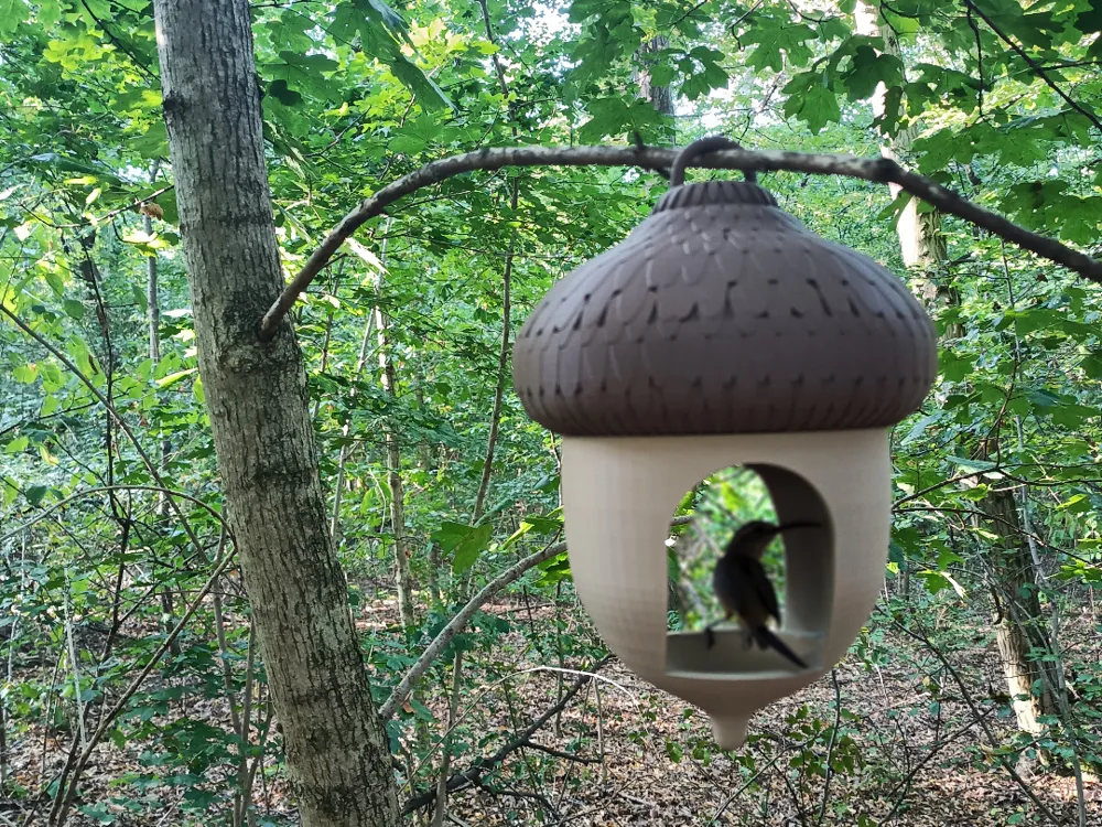 The Acorn Bird House is a charming, nature-inspired design shaped like an acorn, crafted for both style and function. It prints in two snap-fit parts so you can take it apart easily for cleaning, with rigid joints built for durability. The model includes drainage holes to avoid water buildup, and the optional base plate lets you add bird seed feeding functionality. Recent updates improved endurance with bigger joints, and there’s now a version with just one opening if you prefer. It’s been tested holding 100g while hanging without damage, showing it's solid enough for outdoor use. The design works with modest print settings (around 0.2 mm layer height, two walls, ~10% infill), and has different profile options depending on your printer. A thoughtful, practical build that balances aesthetics with usability.
